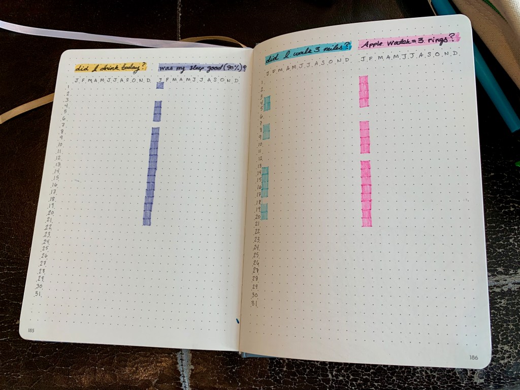 I’ve tried and dropped quite a few different types of trackers, monthly spreads, and goal planning layouts. It has been a series of experiments, and like any experiment, most things I have tried have not worked for me. For 2022 I’m sticking with the things that do work for me, while continuing to experiment.